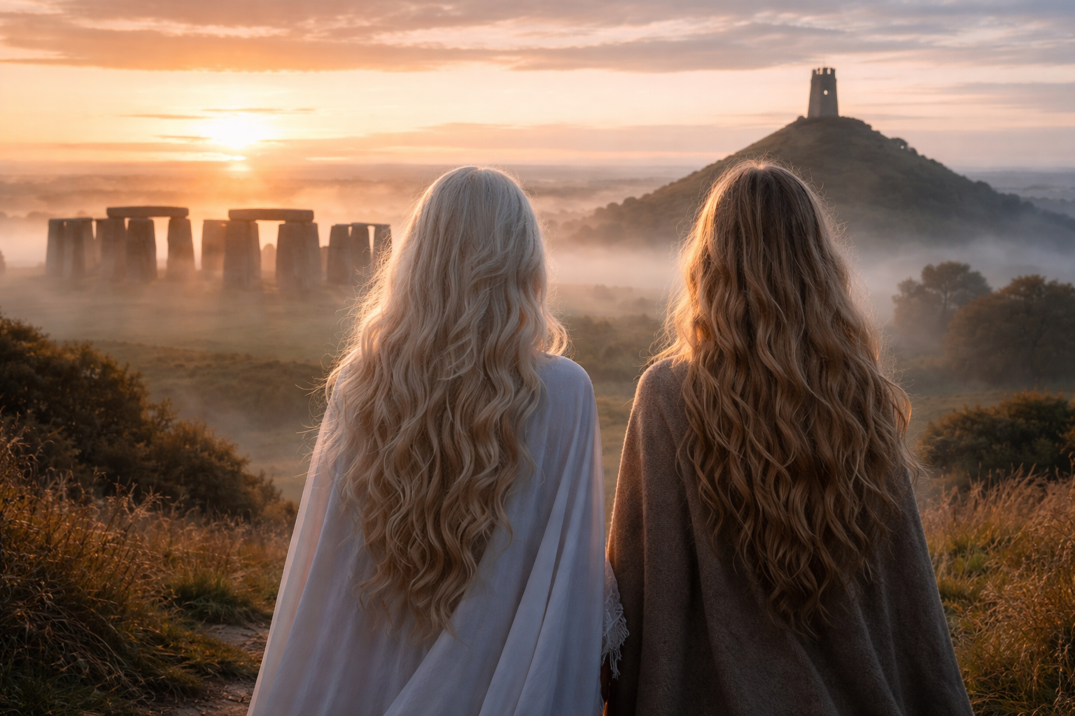 Wir werden durch die Nebel von Glastonbury treten, jener uralten Schwelle zwischen den Welten, wo Zeit ihre lineare Bedeutung verliert. Gemeinsam steigen wir hinauf auf den heiligen Hügel, den Tor, dessen Spirale seit Jahrtausenden die Suchenden ruft. Von seinem Gipfel aus öffnet sich der Blick weit über das Land und oft auch weit in das eigene Innere.